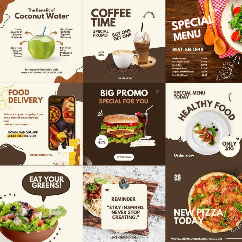 35 Instagram Post Templates for Restaurants, Editable Template, Instagram Canva Template Social Media Kit Instant Download